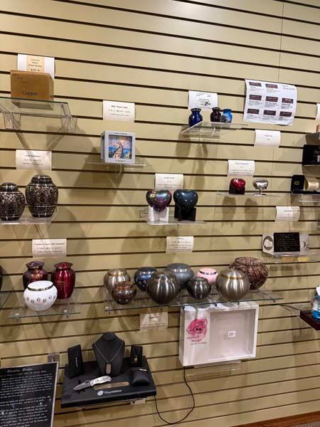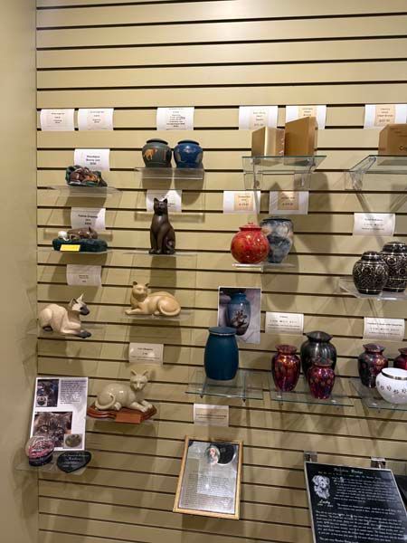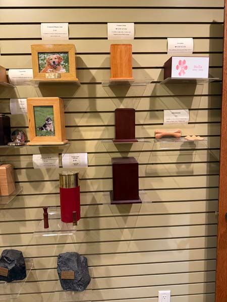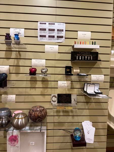 We offer a large selection and variety of urns and caskets made specifically for all pets. Urns starting at $15.00 and up to $750.00; caskets starting at $120.00.