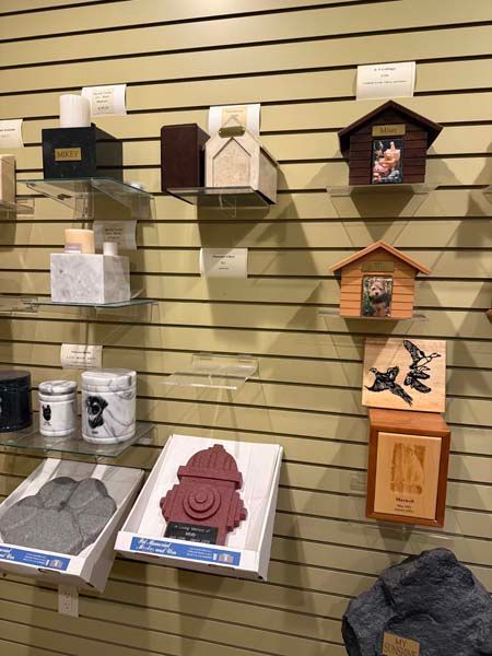 Pets At Rest has available an indoor Columbarium with glass front for placement of the cremated remains, complete with brass nameplate. If desired a viewing and memorial service can be held before the cremation takes place. These services can be held in the Columbarium Chapel at Pets At Rest.